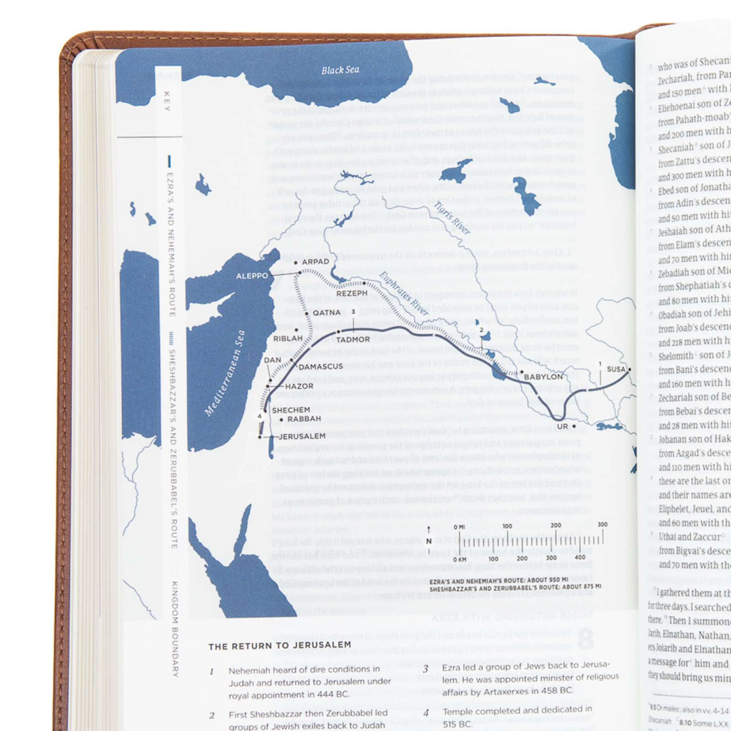 In addition to beautiful Bible text, you’ll discover more than 150 key charts, timelines, maps, and infographics that carefully organize biblical truths to highlight connections often missed while reading. And because Scripture itself is the best interpreter of Scripture, the reading plans for each book include relevant supplemental passages from other parts of God’s Word.