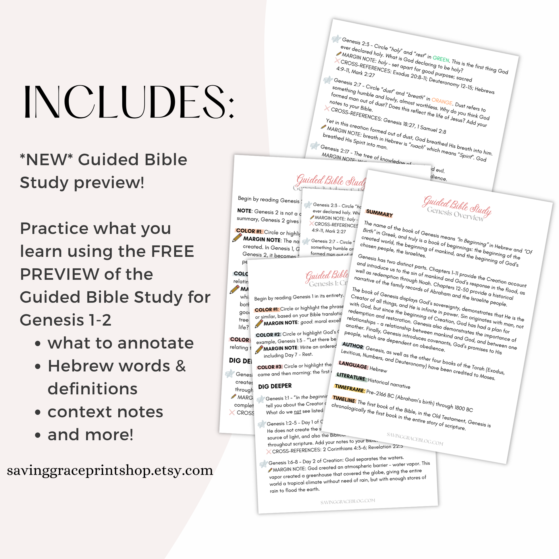 ➡️INCLUDED IN CONTENT "How & What to Write in Your Bible" AND Sample chapters Genesis 1-2 of the NEW "Guided Bible Study" (not sent as separate files; simply included within this printable)
