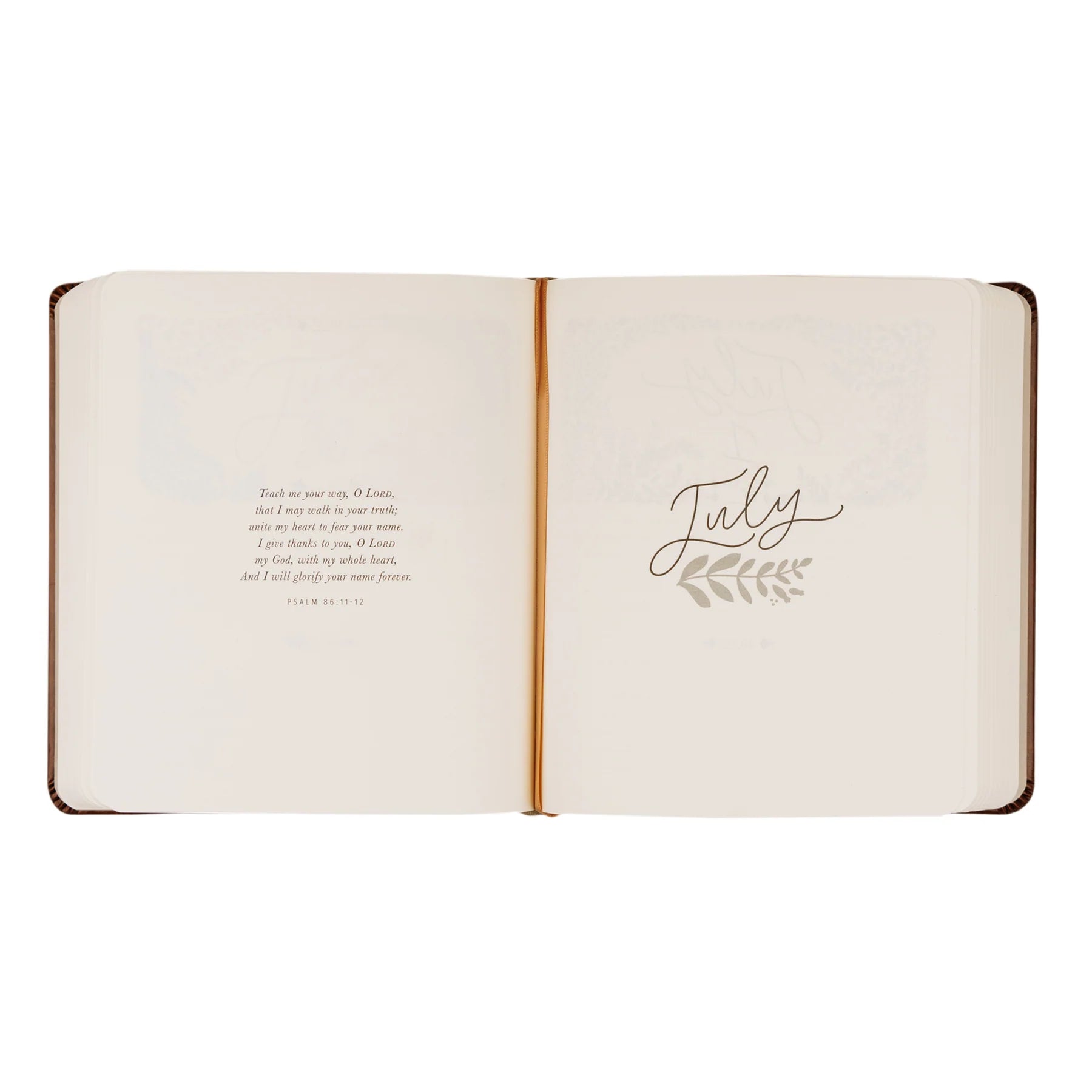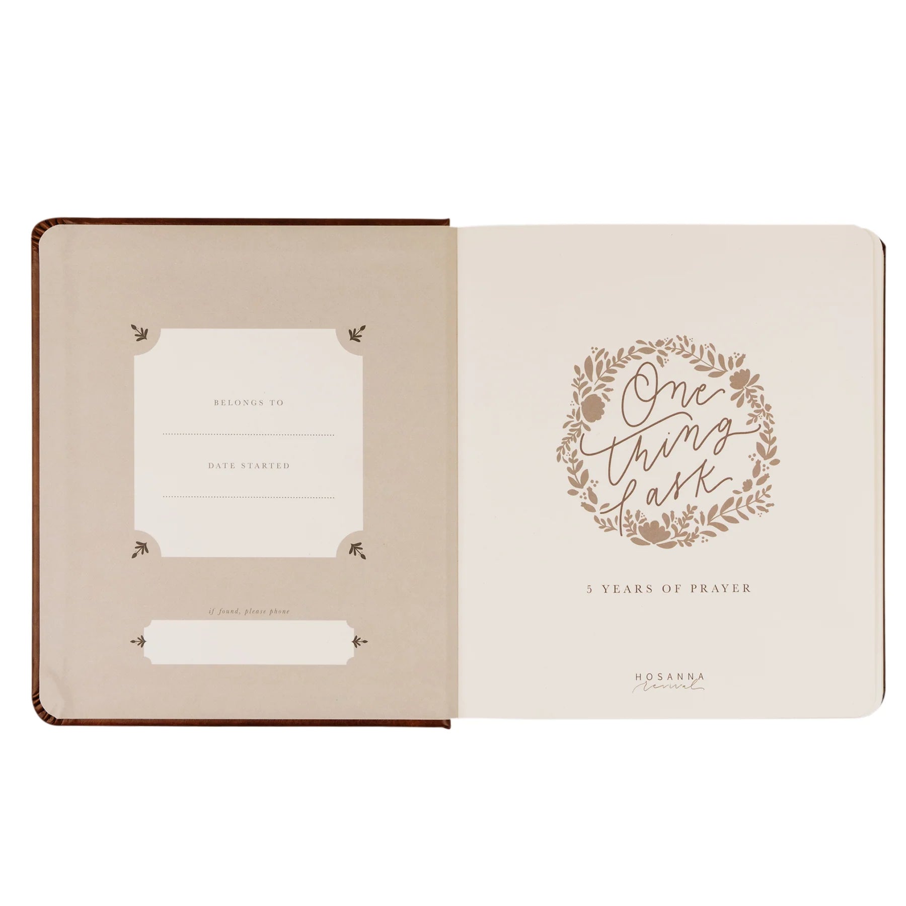 One Thing I Ask is a 5-year prayer journal dreamt up and designed by Hosanna Revival. These beautiful journals were designed to help you remember the faithfulness of God as you journal your prayers. This keepsake journal contains 366 unprompted daily spreads with five entries per day to document your prayers over five years. Each date offers 7 lines per day where you can summarize your prayers into short phrases, or jot them down as bullet points. Over the next five years, this journal will become an active record of the movement of God in your life.