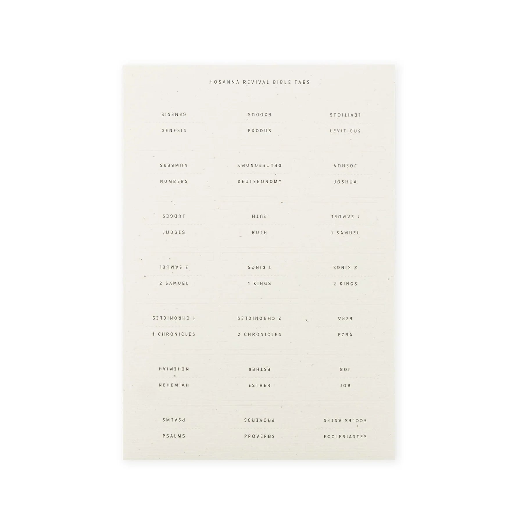 The perfect addition to your beautiful Bible is here! These Bible tabs have been intentionally designed to help you navigate the books of the Bible, while adding a sophisticated and elegant touch. Each tab is double-sided, with deluxe linen paper and black-printed letters to ensure the best quality for your beautiful Bible. These organizational tabs are a great addition and personalized touch when choosing or gifting a new Bible. Included with these Bible tabs is a helpful guide with step-by-step instructions on how to apply your Bible tabs to ensure you get your desired outcome. We pray that these help you as you engage in Scripture and learn more of the Lord’s character and love.