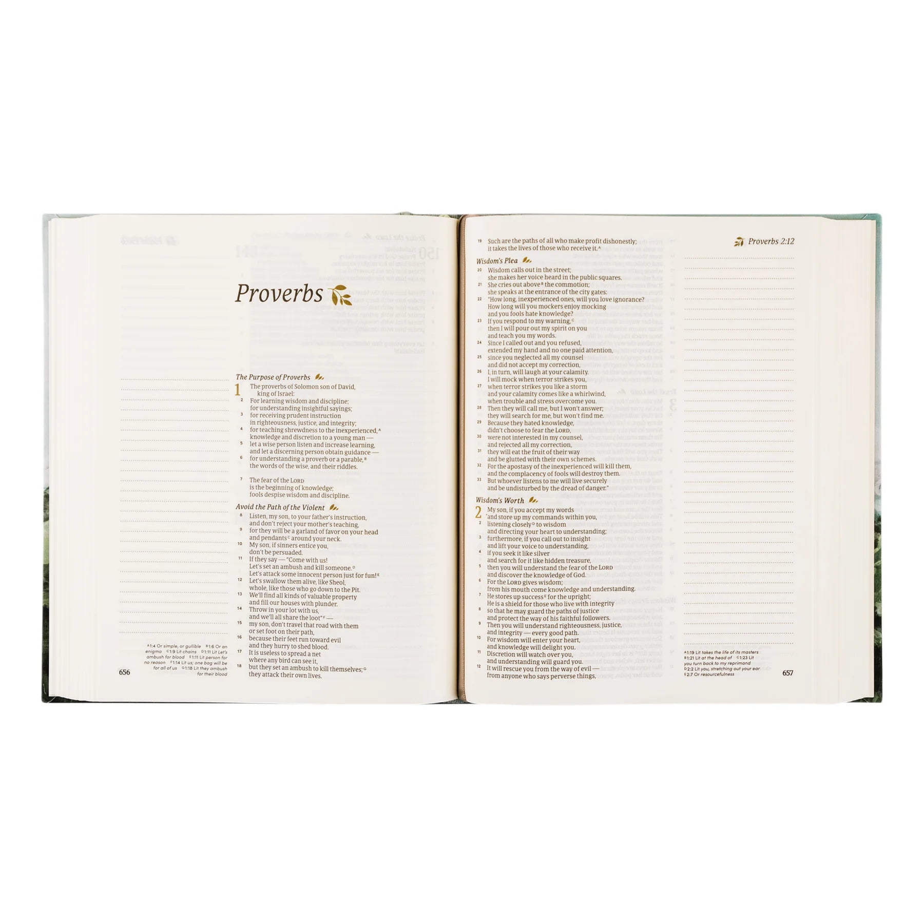 This breathtaking CSB Notetaking Bible features our beautiful Dublin design. Inspired by the countryside of Dublin, Ireland, this serene landscape invites you to experience the rest of God’s character. The rolling hills, lush greenery, and billowing clouds exude life, peace, and the resounding whisper of God’s glory. Nestled within the rolling hills are flocks of sheep, commonly used in the Bible to showcase our role as God’s children. The back of this Bible features the first verse from the beloved Psalm 23: “The Lord is my shepherd; I shall not want.” This verse is an invitation to surrender our fears and desire for control, knowing that we are in the hands of the most careful shepherd. When you pick up this Bible, may the design and verse serve as God’s word to you, reminding you that in a relationship with him, you can find true rest by embracing the Father as your good Shepherd.