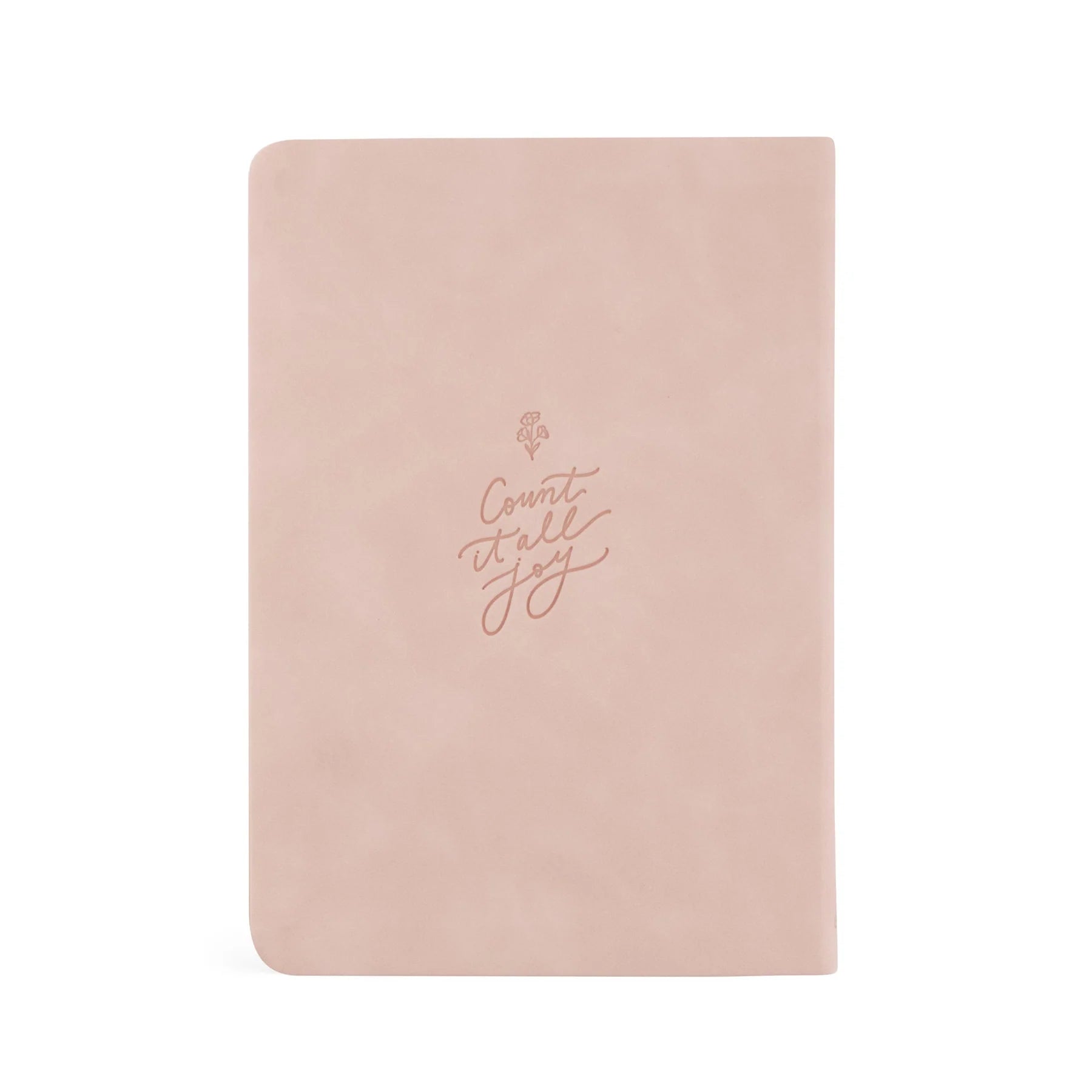 We’ve created a beautiful notebook with our best selling Shiloh design! Our soft and delicate suede Shiloh notebook is inspired by the town of Shiloh in the state of Georgia, where the neighboring Callaway Gardens house the beautiful Cecil B. Day Butterfly Center. In the same way that butterflies undergo an intricate transformation to reach their full beauty, we pray this notebook is a tool that you can use as the Lord transforms your heart from the inside out. The back features this beautiful phrase from James 1:2: “Count it all joy,” which speaks to how God is with us in every pain and affliction and can redeem all suffering. As God transforms you, may any suffering you face be tenderly redeemed by his loving hand over your life.