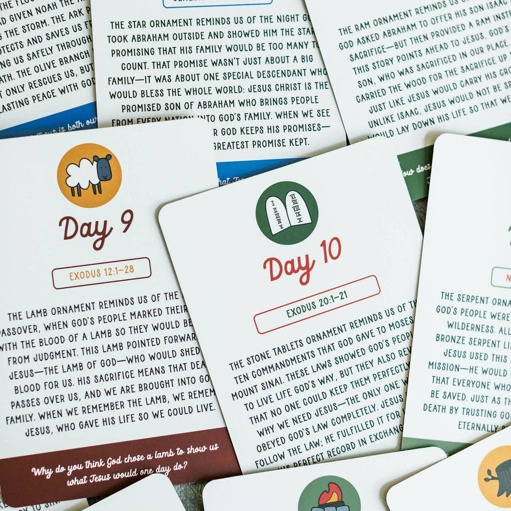 The Jesse Tree is a classic Advent tradition that helps children see how every promise of God finds its “Yes” in Jesus. With our very own Jesse Tree set, your family can trace the story of Scripture from creation to Christ’s birth, discovering together how Jesus fulfills every promise of God.