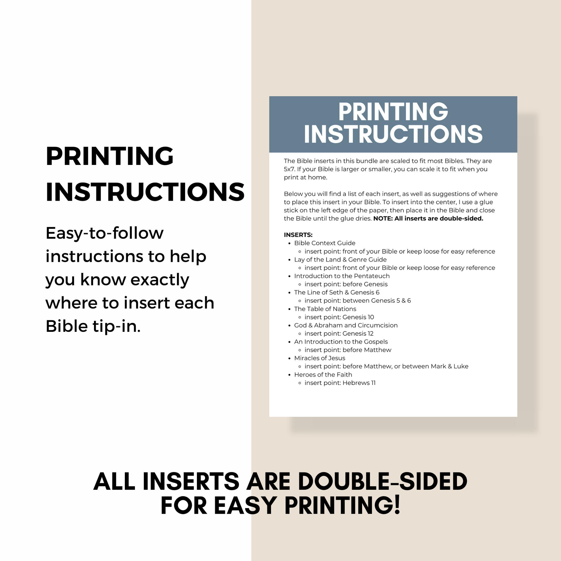 BIBLE INSERTS INCLUDED IN THIS BUNDLE: