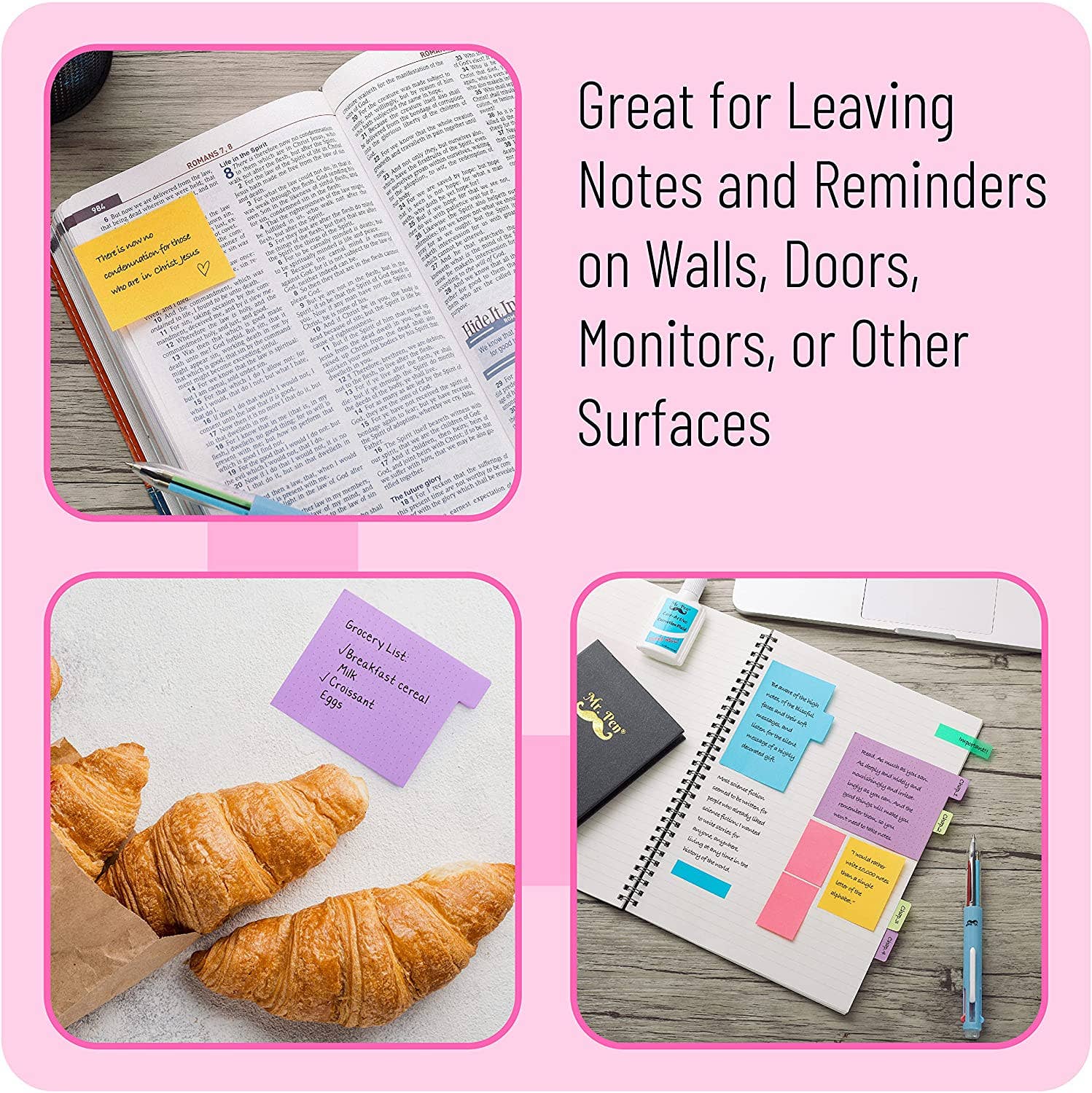 Bright Sticky Note Set is perfect for Bible journaling. NOTE: There are no transparent sticky notes in this set, with the exception of the annotation tabs.