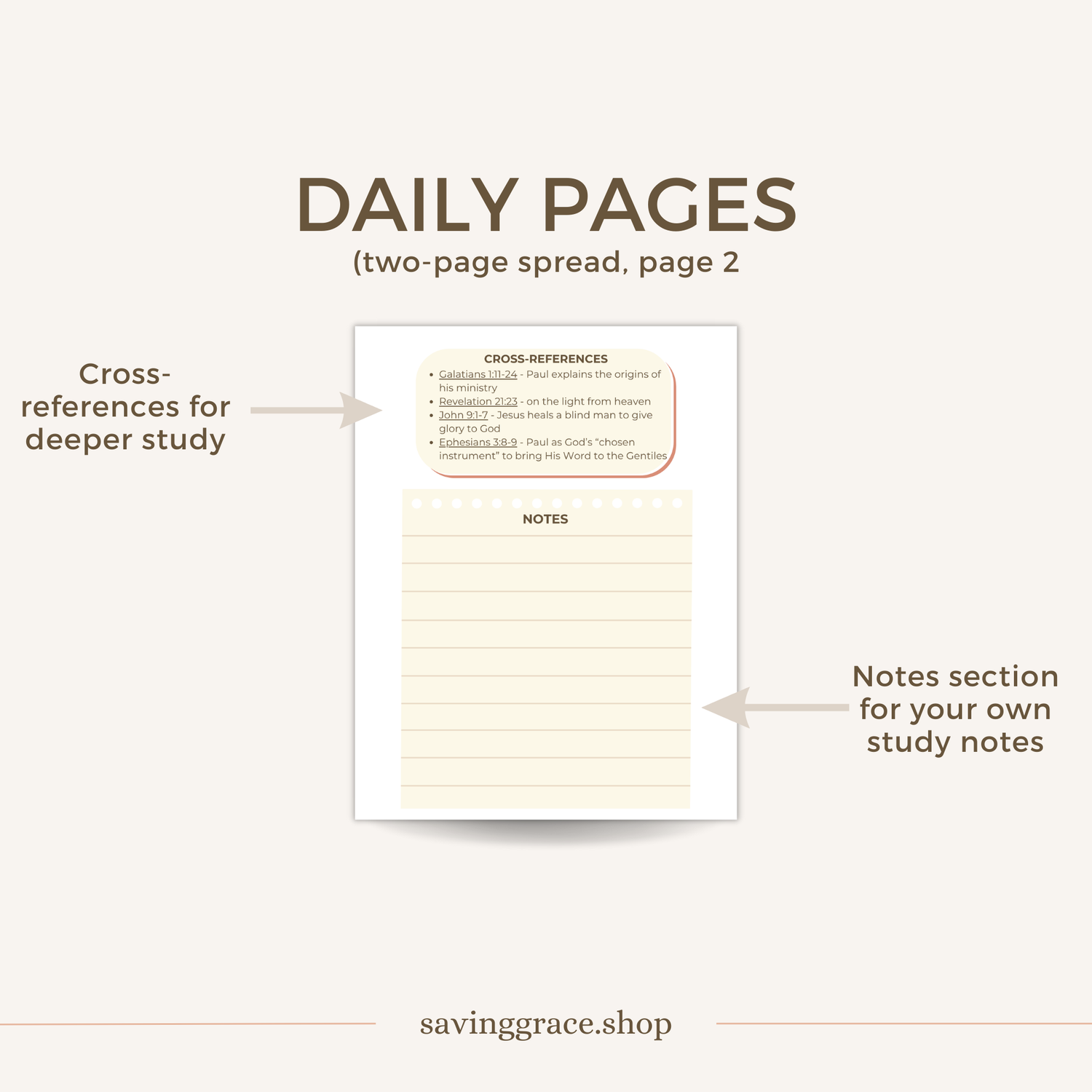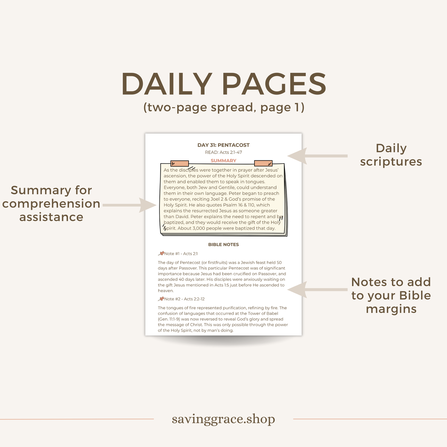 This thoughtfully designed reading plan lays a solid foundation for your spiritual growth by guiding you through Scripture with helpful summaries of each day's reading, Bible margin notes, and cross-references. Whether you're new to Bible study or looking to renew your time in the Word, this plan provides structure and simplicity to your daily reading.